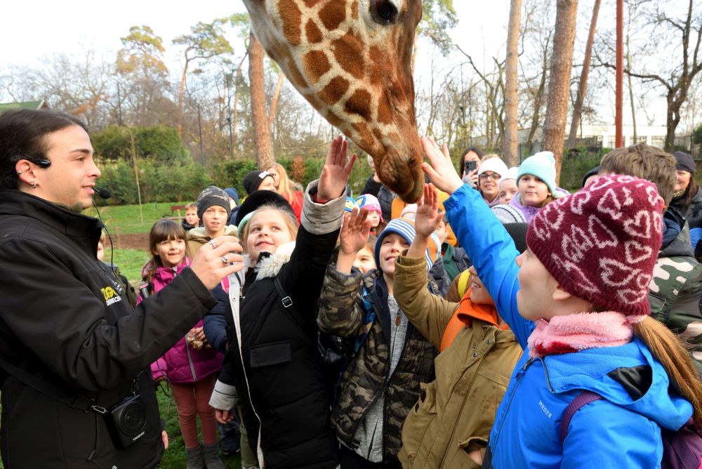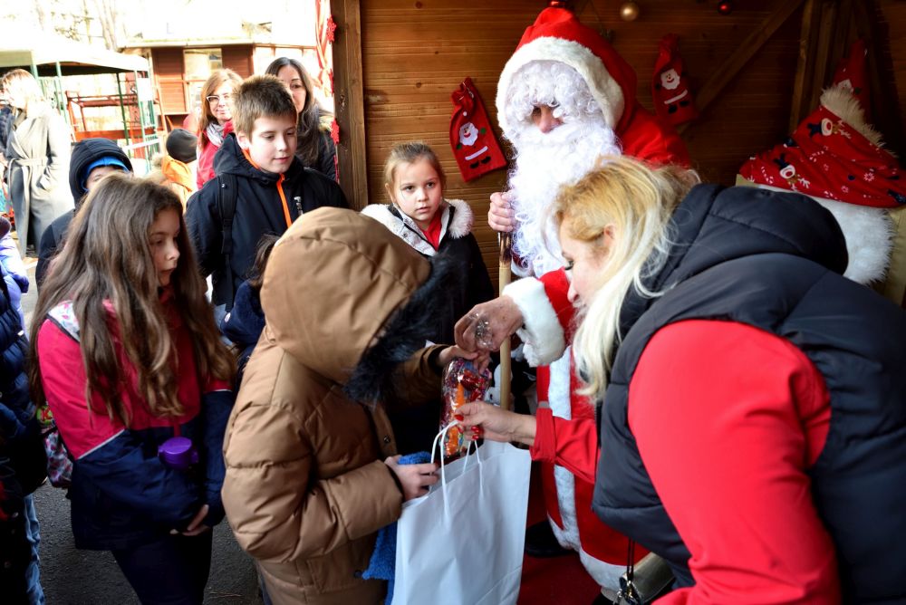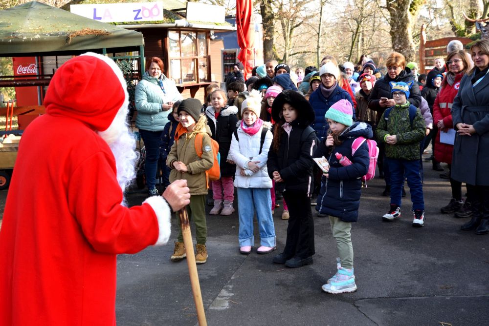 A kisdiákokat nagy meglepetés érte a túra végén: a bejáraton nem kellett kimenniük, mert azon besétált a Mikulás. Őszinte örömmel fogadták az apót, aki mikuláscsomagokat és ajándékokat adott át – a Vöröskereszt és adományozók ajándékait –, majd elbeszélgetett személyesen is a gyerekekkel. A fiatalok minden részletre kíváncsiak voltak, arra is, hogy Rudolfot – szánhúzó rénszarvasát – a Mikulás átmenetileg a zsiráfok között kötötte ki. Olyan fiatalok vettek részt a programban, akiknek élethelyzetük miatt szükségük volt arra, hogy ily’ módon megélhessék az ünnep varázsos, szeretettel, meglepetéssel teli hangulatát, és eljussanak az Állatkertbe.