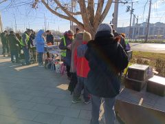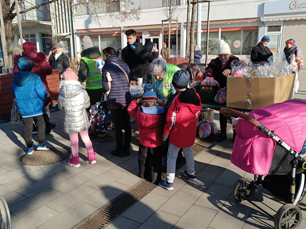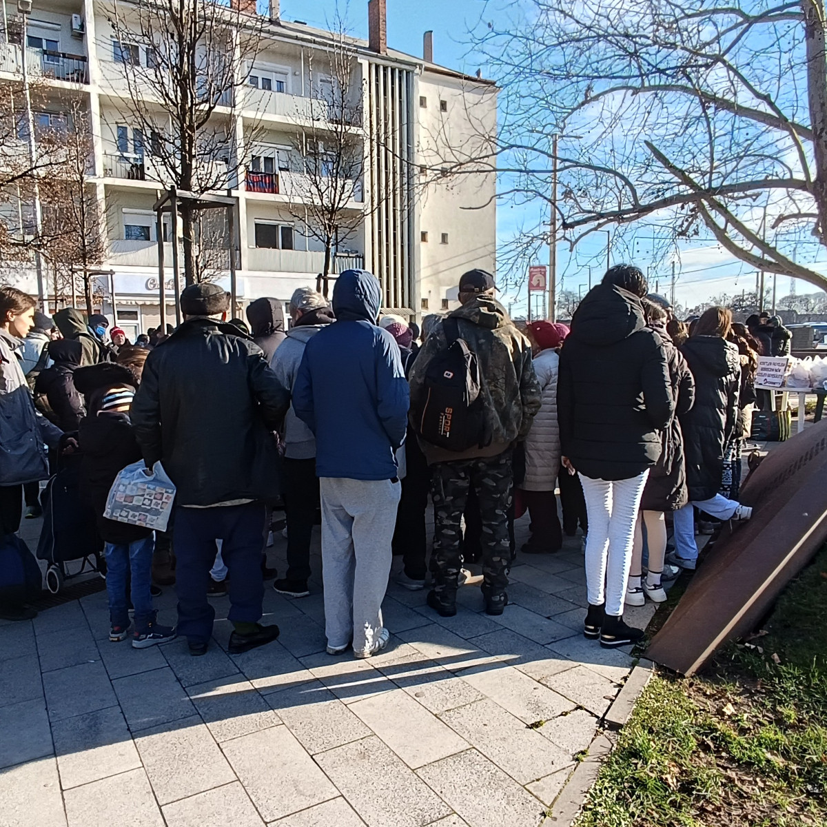 A Petőfi téren a sor egyre hosszabb lett. Felnőttek, gyermekek, idősek és középkorúak érkeztek folyamatosan. Többségük kisnyugdíjas vagy nagycsaládos. Őket különösen súlyosan érinti az ünnepi időszak, hiszen a hétköznapokon is gyakran nélkülöznek.