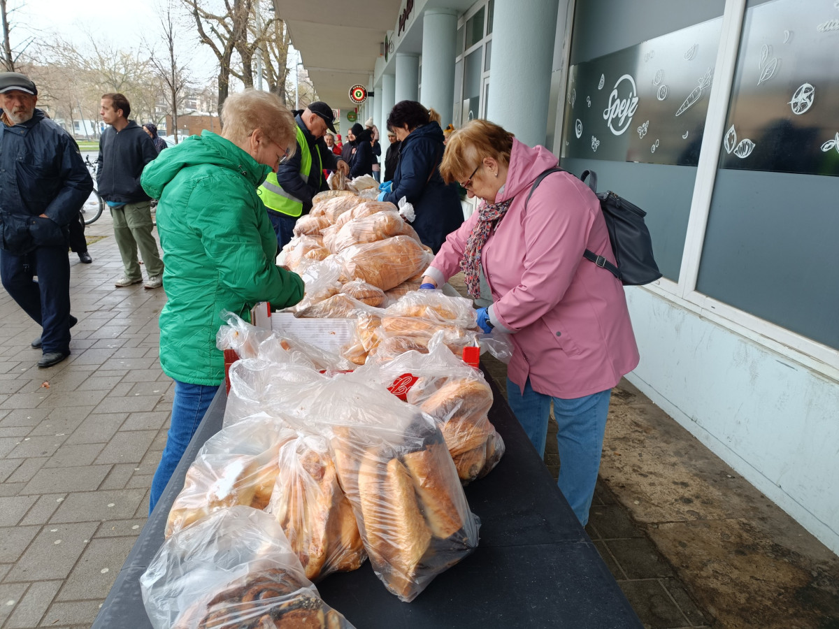 Szerencsére minden alkalommal találkozunk Debrecen szebbik arcával. Tiszta szívből köszönjük annak a debreceni házaspárnak, akik saját maguk sütötte pizzát hoztak most is a Petőfi térre. De fejet hajtunk azelőtt a debreceni nyugdíjas hölgy előtt is, aki már több éve hoz csokit, édességet a gyermekeknek. Külön köszönjük a Szováti Kemencés Pékség – Hajdúszoboszló segítségét, süteményeik ritka kincsek vendégeinknek. Ilyen finomságokat ők nem engedhetnek meg maguknak. Hálásak vagyunk Magdinak és Katikának a maguk sütötte muffinért. Jóízűen fogyasztották kicsik, és nagyok egyaránt. Köszönjük annak a debreceni hölgynek a segítségét, aki húsvéti édességeket hozott a térre, a szüleikkel érkező gyermekeknek.