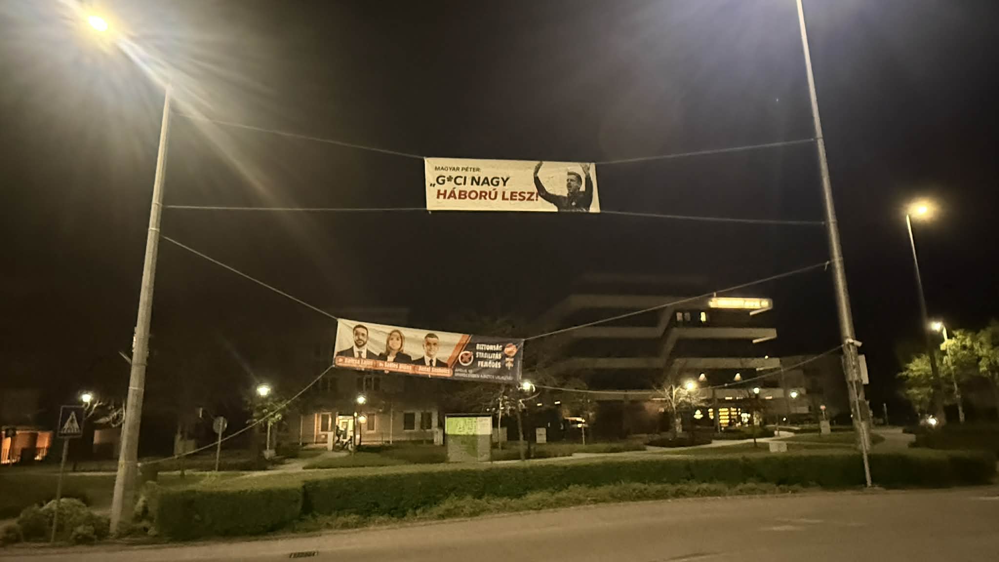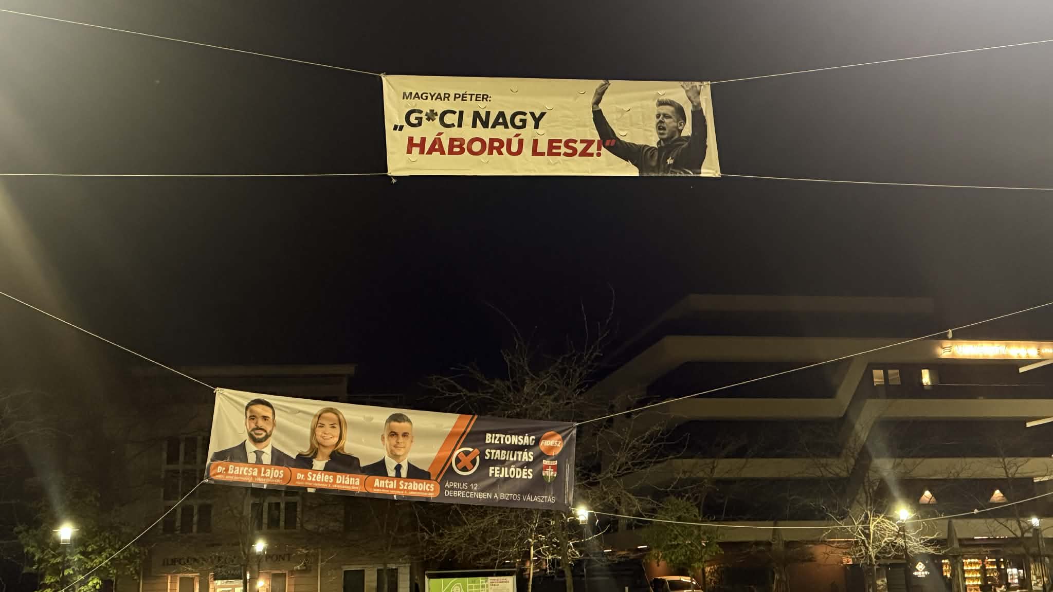 A felvételeket köszönjük olvasónknak, aki elmondta, a plakátot az Egyetem tér (itt lesz szombaton Magyar Péter kampányzárója) közelében helyezték ki. Tudomása szerint a Böszörményi úton is látható egy hasonló darab.