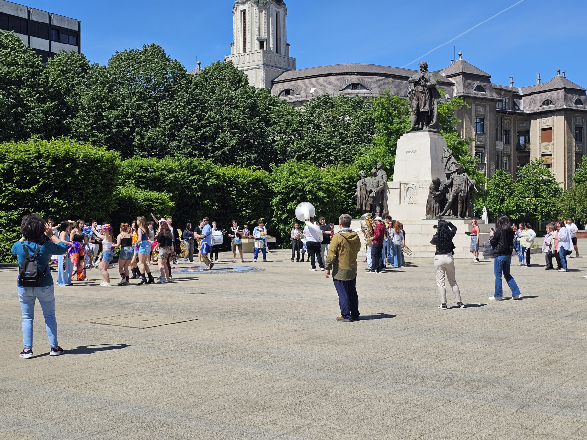Megkezdődtek a bolondballagások Debrecenben, városszerte találkozhatunk vicces öltözékbe bújt, látványos koreográfiát előadó végzős középiskolásokkal.