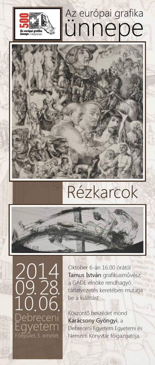 „500+1 éves az európai grafika” címmel Debrecen több kiállítótermében, így az egyetemen is rendez tárlatot a grafikusművészek debreceni egyesülete.