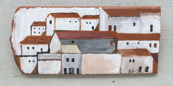 Újabb kiállítási anyaga gyűlt össze Bothné Dórának. A cívisvároshoz közeli Nagycserén, gyönyörű tanyasi környezetben élő alkotó – aki természetesen ízig-vérig debreceninek vallja magát, hiszen minden ideköti – szeret kísérletezni. Korában kipróbálta azt, milyen, ha bőrökre fest. Most új anyag került a látóterébe: ezúttal cserépre kezdett festeni.
