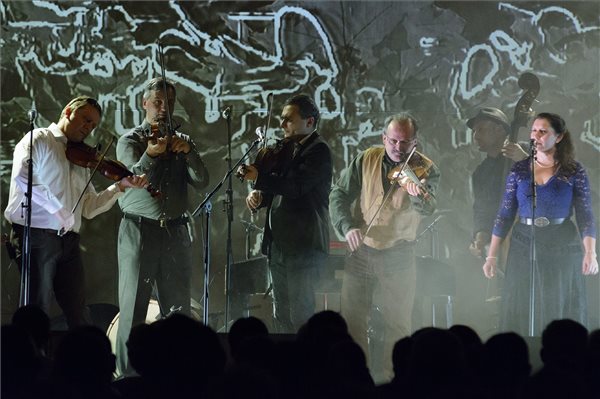 Szabó Attila, Kunos Tamás, Lakatos Róbert, Csík János, Bartók József és Majorosi Marianna (b-j) a Csík zenekar koncertjén a debreceni Kölcsey Központban 2014. november 26-án. MTI, fotó: Czeglédi Zsolt.