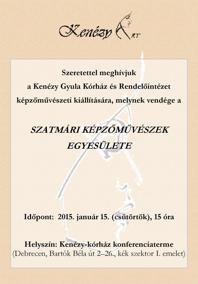 A Szatmári Képzőművészek Egyesülete a Kenézy Art következő vendége. A kiállítás megnyitója 2015. január 15-én 15 órától lesz.