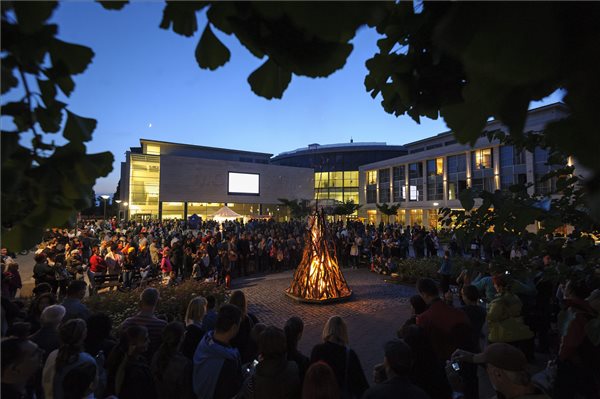 Érdeklődők a Szent Iván-éji máglya körül a debreceni Baltazár Dezső téren, a Múzeumok éjszakáján 2015. június 20-án. MTI Fotó: Czeglédi Zsolt
