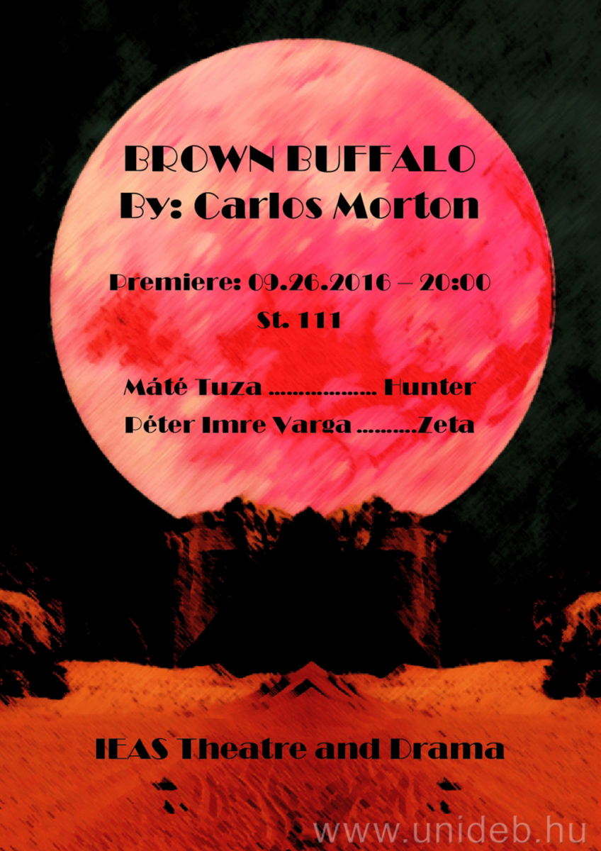 Carlos Morton kortárs csikánó (mexikói kötődését tudatosan vállaló) amerikai drámaíró Brown Buffalo (2014) című darabját adja elő az Angol-Amerikai Intézet hallgatói társulata Lakó Zsigmond rendezésében. Az angol nyelvű előadást szeptember 26-án, hétfőn 20:00-kor,a Debreceni Egyetem Főépületének Stúdió 111-es termében mutatják be.