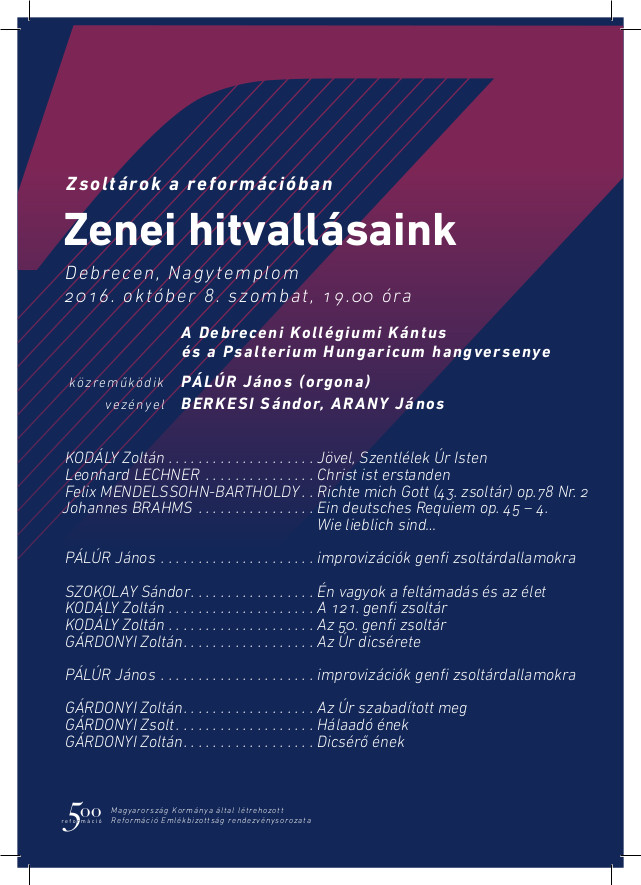 Zsoltárok a reformációban Kultúra október 1, 2016október 30, 2016Szabolcs SzilágyiSzóljon hozzá a Zsoltárok a reformációban bejegyzéshez A Debreceni Kollégiumi Kántus és a Psalterium Hungaricum hangversenye.Tetszett? Oszd meg másokkal is!
