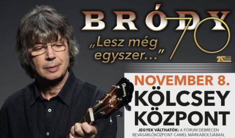 Az idén áprilisban 70. életévét betöltő legenda, Bródy János lép fel a debreceni Kölcsey Központban. Óriási az érdeklődés, jegyek már csak korlátozott számban kaphatók.A legutóbbi, „Az Illés szekerén” című albuma dupla platina példányszámot ért el és elnyerve a szakma és közönség elismerését is, az Év Lemeze Fonogram díjban részesült. A nagy sikerre való tekintettel a 70. évforduló alkalmából megjelenik a Ráadás, Bródy János legújabb stúdiófelvételeinek albuma, melyen néhány régebbi dal újraértelmezése mellett vadonatúj szerzemények is szerepelnek majd.