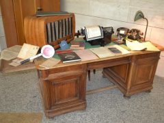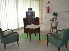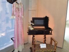 Így került az első, 1911-es villamoskocsit ábrázoló fotó mellé egy korabeli női ruha napernyővel, egy régi, “lebetonozott” hirdetőoszlop a színház egykori plakátjaival, egy ’60-as éveket idéző szobasarok, vagy egy korabeli színházi öltöző.