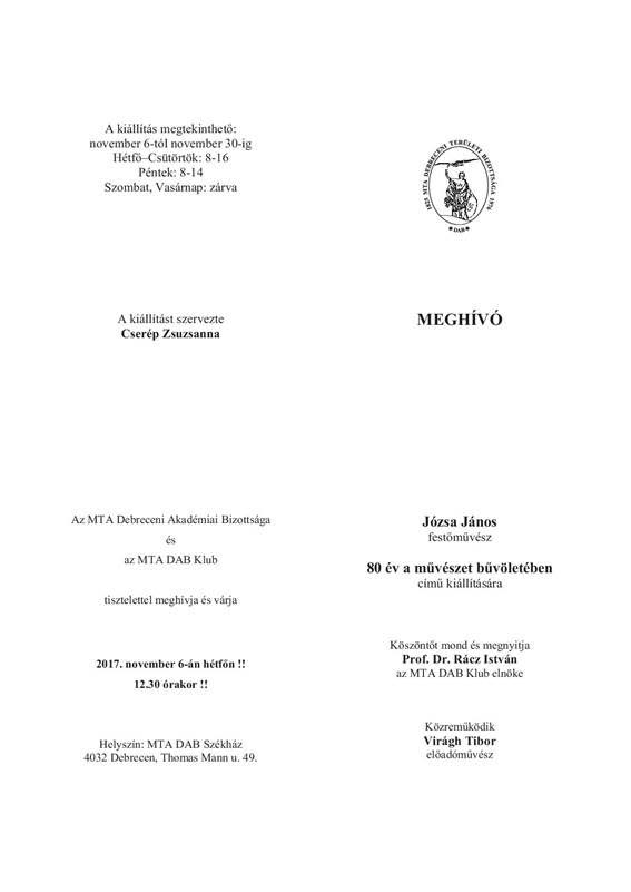 Józsa János műveiből nyílik kiállítás a DAB székházban Kultúra október 25, 2017november 16, 2025Szabolcs SzilágyiSzóljon hozzá a Józsa János műveiből nyílik kiállítás a DAB székházban bejegyzéshez 80 év a művészet bűvöletében.A legjobb házak és lakások Debrecenben ár/érték alapján - Írisz Ingatlan Tetszett? Oszd meg másokkal is!