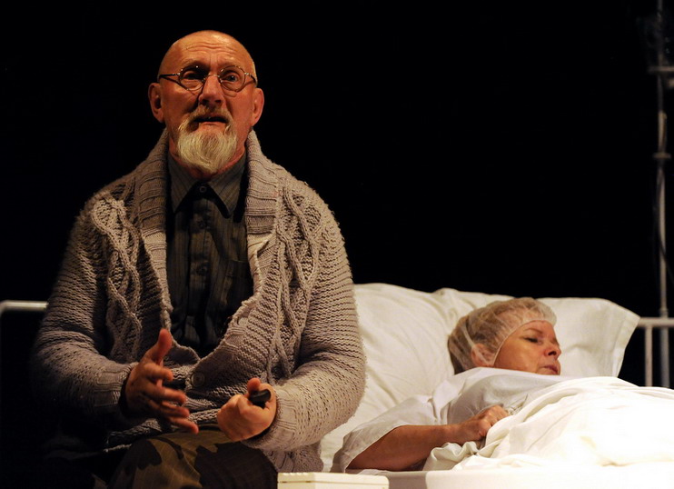 Bicskei Istvánnal következő alkalommal a Lear király című előadásban találkozhat a közönség. Máthé András csatolt fotóján a színművész Az ajtó című előadásban látható Kubik Annával.