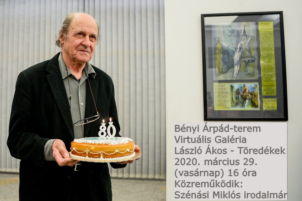80 év és 12 nap. Így kommentálta László Ákos grafikusművész a Töredékek című kiállítás apropóján készült születésnapi beszélgetését, amelyet már a koronavírus miatt bezárt Bényi Árpád-teremben készített el Tóth András kulturális menedzser, Bodnár Gábor és Mensáros Bence műszaki munkatársak.
