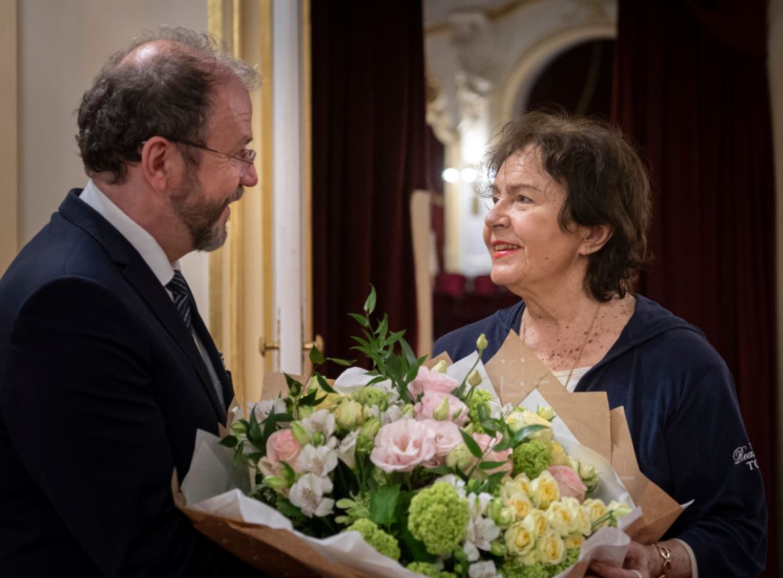 A nemzet színészévé megválasztott Lehoczky Zsuzsát köszöntötték az Operettszínházban május 12-én.