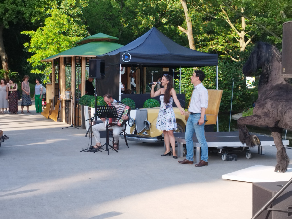 A pikniken kihirdették a következő évad műsorát, a nyári szabadtéri előadásokat pedig egy ötletes, legyező formájú prospektussal ajánlották a színház vendégei figyelmébe. Kánikula lévén ez egyébként kiváló ötlet volt, jár érte a dicséret a szervezőknek.