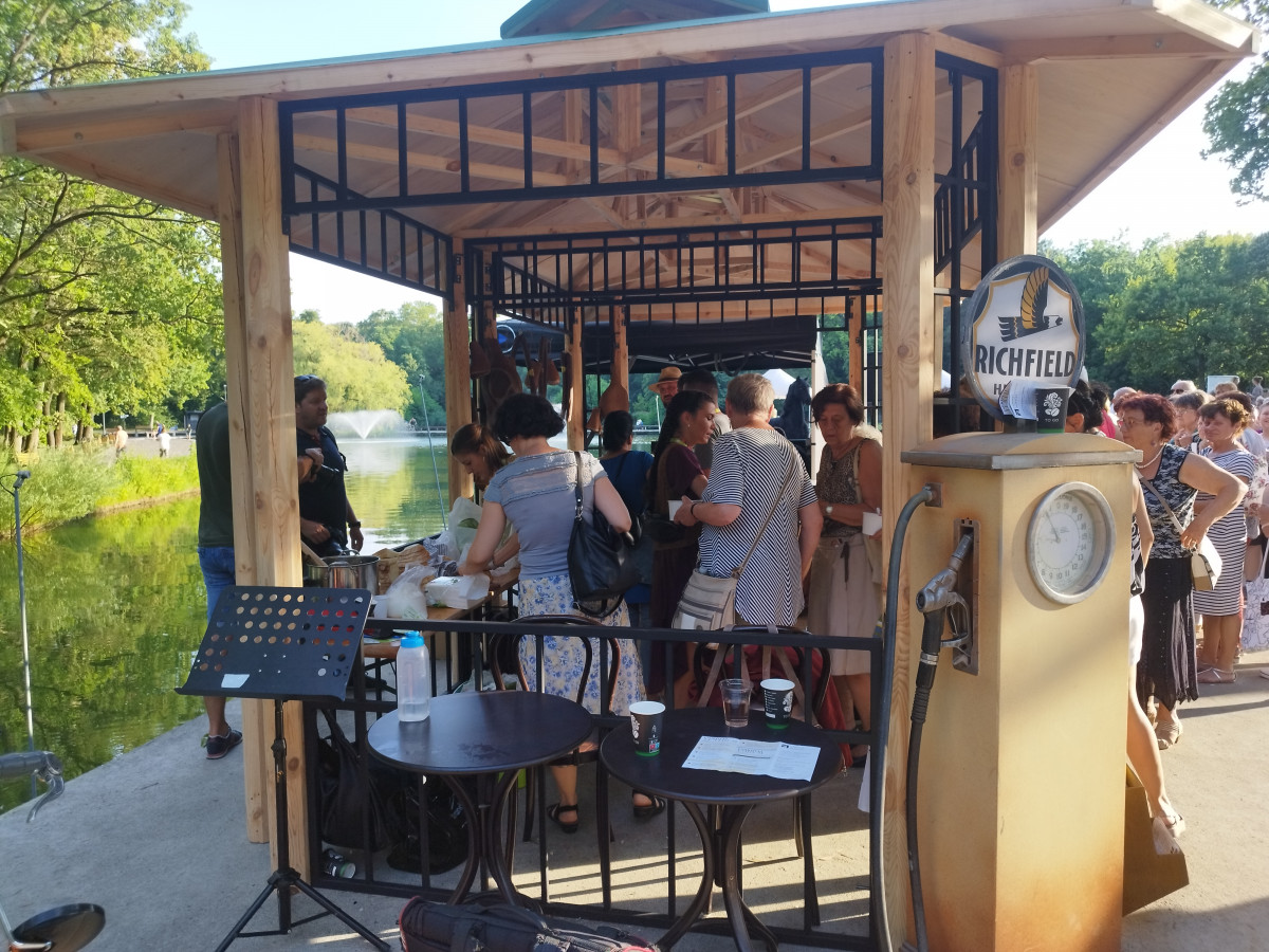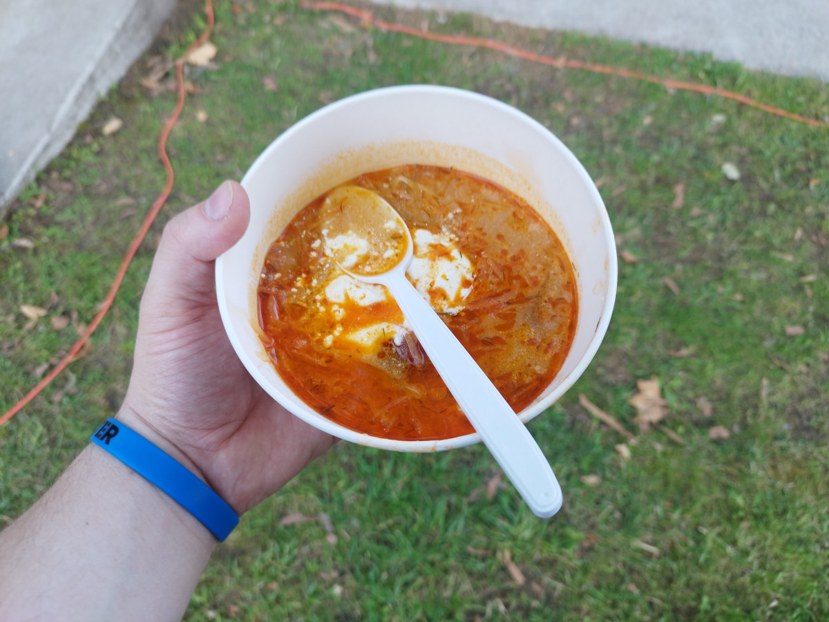 Szabó K. István később ígéretéhez híven kötényt ragadott, és egy igazi, hamisítatlan korhelylevessel lepte meg a vendégeket – ehhez igény szerint járt kovászos kenyér, házi tejföl és hegyes erős paprika is. Szomjoltó gyanánt rozéfröccs és szörpös víz várta a megjelenteket. A korhelyleves egyébként nagy siker lett, hosszú sorok kígyóztak a stand előtt, ahol osztották.