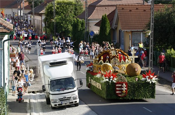 A két város között júniusban megkötött együttműködési megállapodás első eredményeként Tiszafüreden kezdődött a debreceni virágkarnevál Debrecen Szent Koronát ábrázoló és Tiszafüred halászatot megjelenítő virágkocsijának felvonulásával. MTI Fotó: Bugány János