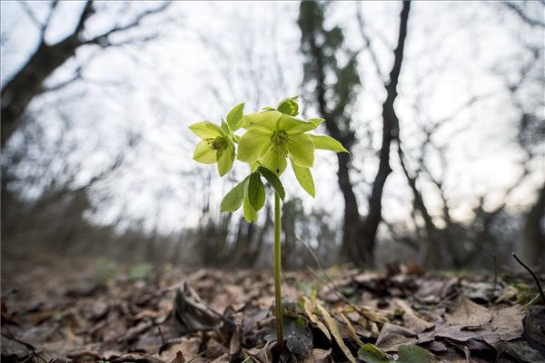 Virágzó illatos hunyor (Helleborus odorus) a Mecsekben, Pécs közelében.