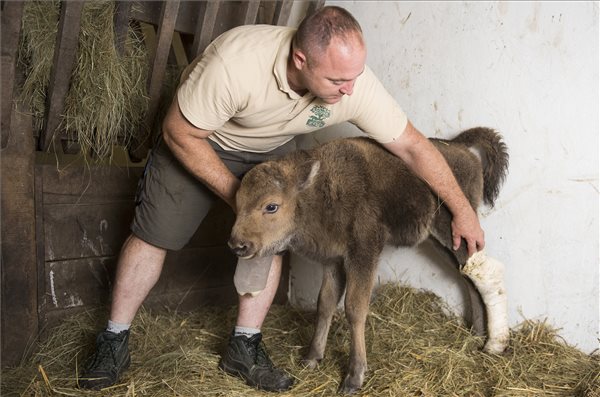 Az utódot születése után az apja megtaposta és a gondozóknak kellett kimenteniük a bikából és két tehénből álló csapatból. Az állat lábát az állatorvosok megröntgenezték és begipszelték, a törött csont szépen gyógyul – mondta Révészné Petró Zsuzsa, az állatkert osztályvezetője-szóvivője hétfőn az MTI-nek.