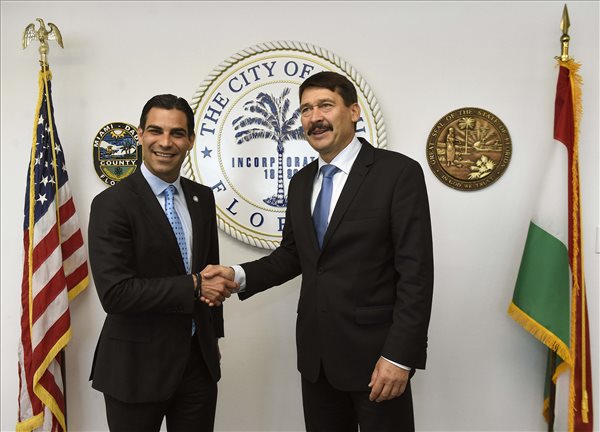 A floridai látogatáson tartózkodó magyar államfő pénteken tárgyalt Francis Suarez miami polgármesterrel.