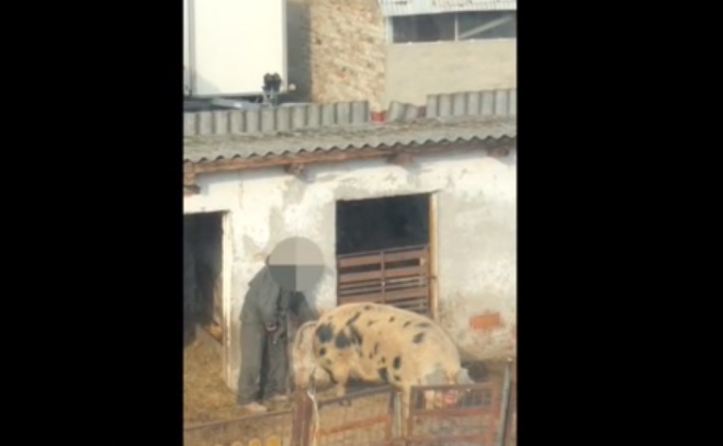 Az esetet egy szomszéd vette videóra még a múlt héten. A felvételen az látszik, hogy a bácsi egy darabig tanácstalanul nézi a disznót, majd mögé lopódzik, és közösülni készül vele. A videót itt megállították.