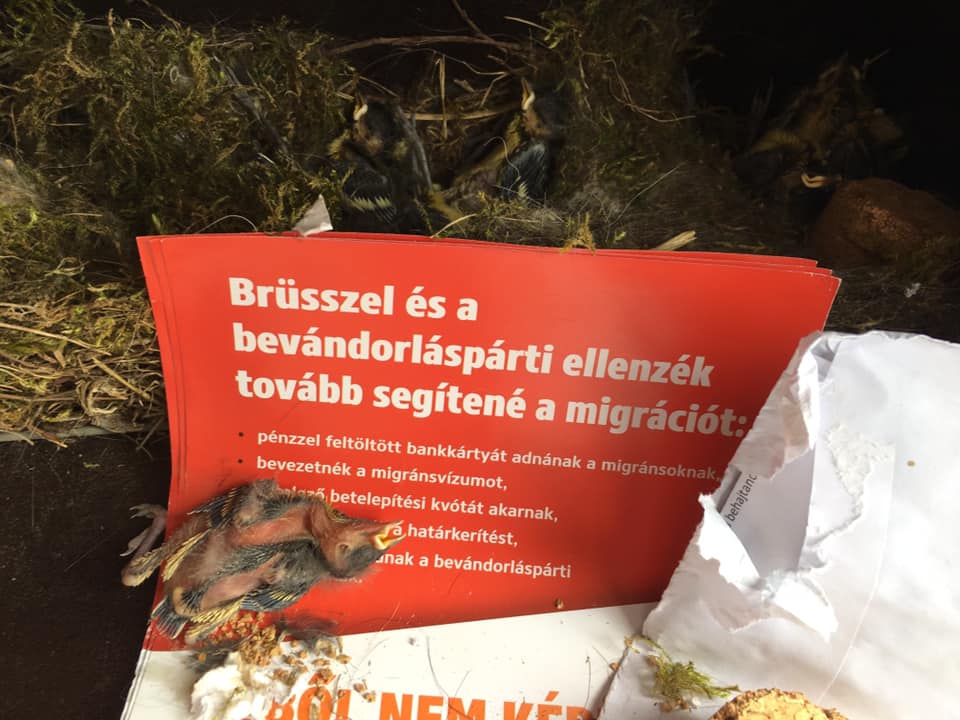 A Halásztelek elveszett állatai Facebook-csoportba posztoltak be több fotót és egy szöveget, ami szerint fideszes szórólapokkal öltek meg 7 madárfiókát – szúrta ki a 444.hu.