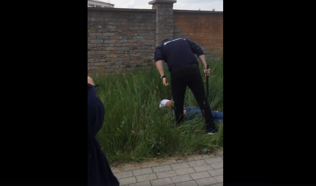 Facebookon terjed egy videó néhány napja, amin látszik, hogy a tököli Tesco biztonsági őrei egy földön fekvő embert vesznek körbe a fűben, és gumibotjukat lóbálva fenyegetik.