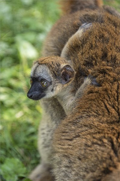 A barnamakik családjába tartozó sárgaszakállas maki (Eulemur fulvus mayottensis) született a Nyíregyházi Állatparkban.