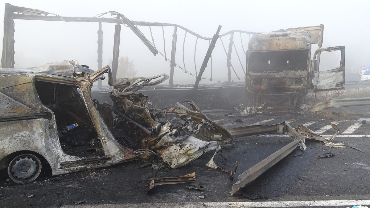 Szabó Szilvia elmondta, egy Budapest felé tartó szerb kamion hajnali fél három körül az autópálya 146-os kilométerénél, Balástya közelében
