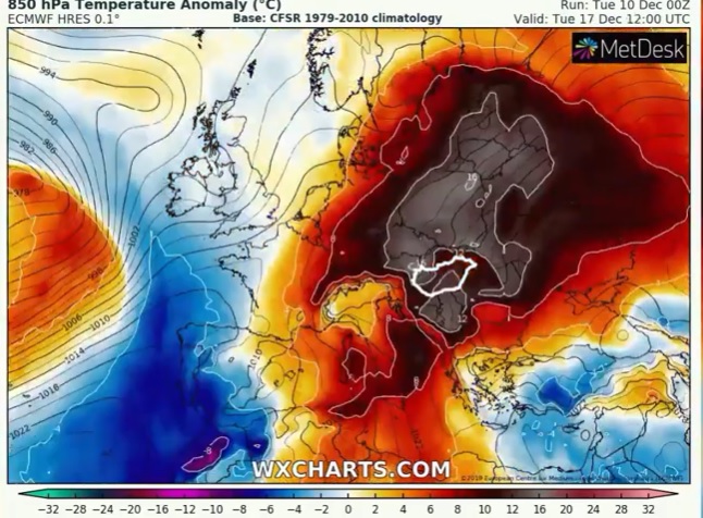 A következő hét vége felé talán ismét érkezik egy lehűlés, de ennek valószínűsége még bizonytalan. A fehér karácsonyra egyelőre kevés esélyt látnak a szakemberek.