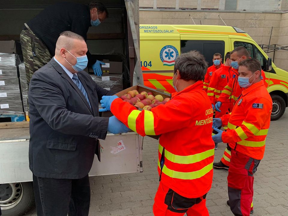 Büszként számolt be Facebook-oldalán Németh Szilárd arról, hogy az ápolók napján néhány láda almát vitt a csepeli mentősöknek.
