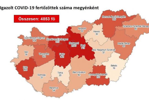 Negyvennel, 4853-ra emelkedett az azonosított koronavírus-fertőzöttek száma Magyarországon; nincs újabb elhunyt – közölte a koronavirus.gov.hu pénteken. A kormányzati portálon azt írták: a koronavírus-fertőzés miatt elhunytak száma változatlanul 607, 3590-en pedig már meggyógyultak. Az aktív fertőzöttek száma 656. Az aktív fertőzöttek 31 százaléka, az elhunytak 60 százaléka, a gyógyultak 43 százaléka budapesti. Kórházban 64 koronavírusos beteget … Bővebben: 64 koronavírusos beteget ápolnak kórházban, negyvennel nőtt a fertőzöttek száma