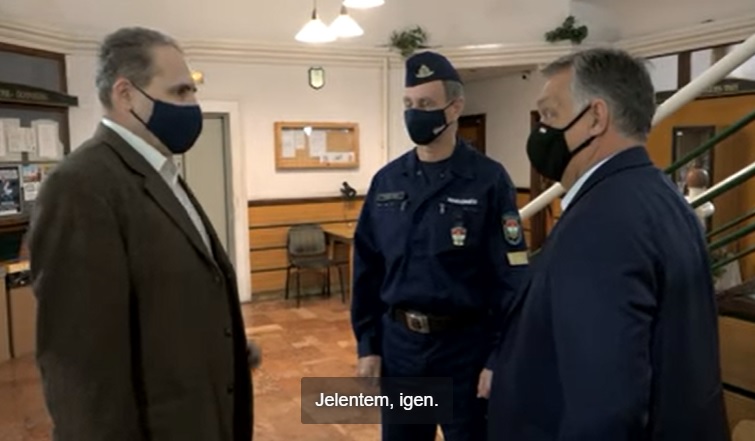 Előzetes bejelentés nélküli ellenőrzést tartott Orbán Viktor miniszterelnök az V. kerületi rendőrkapitányságon szerdán reggel, a szemléről videót is megosztott a közösségi oldalán – tájékoztatta az MTI-t Havasi Bertalan, a miniszterelnök sajtófőnöke. Az operatív törzs kora reggeli ülése után a kormányfő Balogh János országos rendőrfőkapitánnyal indult az ellenőrzésre, melynek során Paál Péter György kapitányságvezetőtől jelentést hallgattak meg a kijárási tilalom és a maszkviselés szabályainak betartásával kapcsolatban.