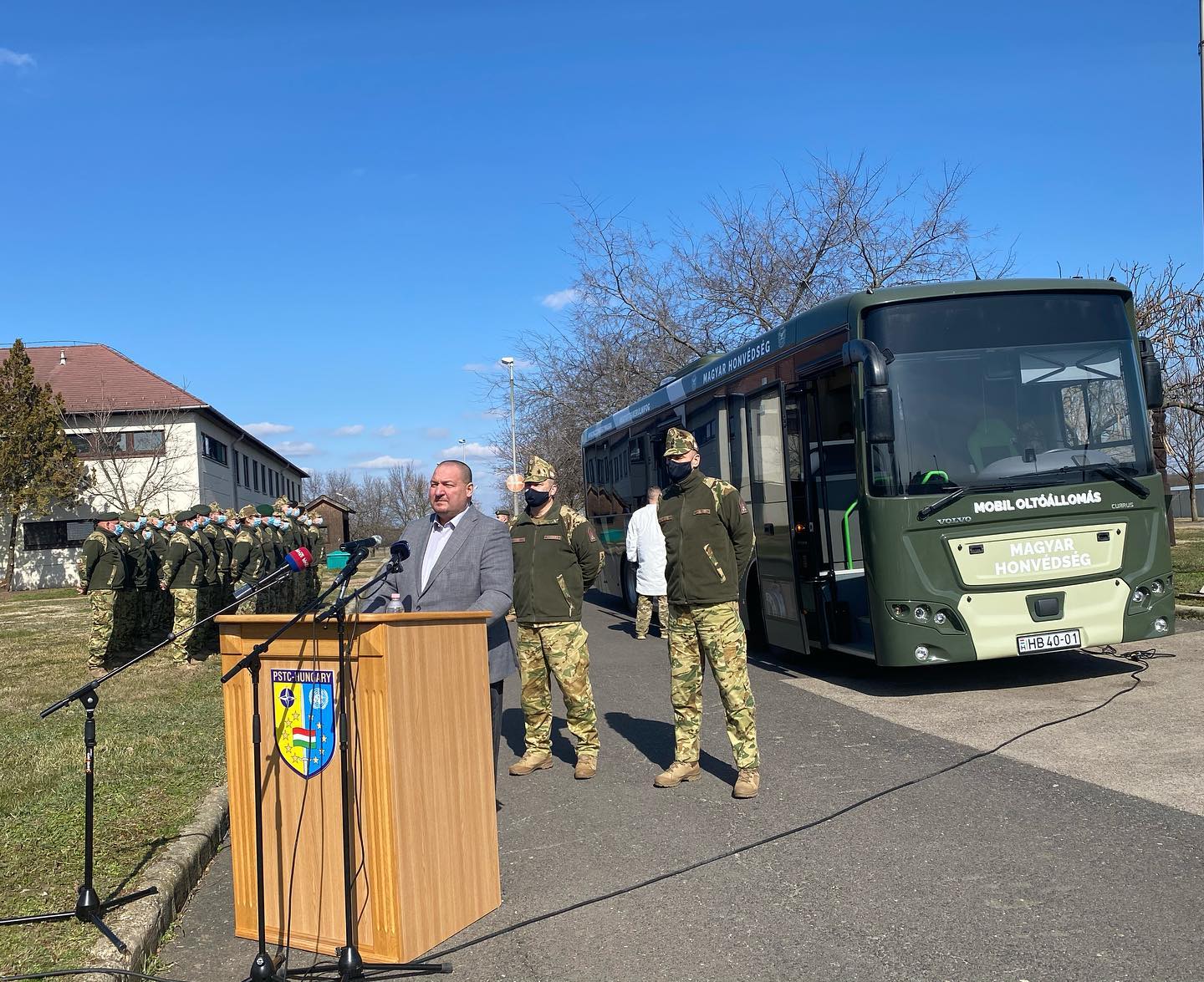 Németh Szilárd, az MH Béketámogató Kiképző Központban levő oltóbusznál, a határra induló katonák oltása közben tartott sajtótájékoztatón elmondta: az oltóbuszok február végén készültek el, és öt áll rendelkezésre. Az oltóbuszok első állomása Szolnok.