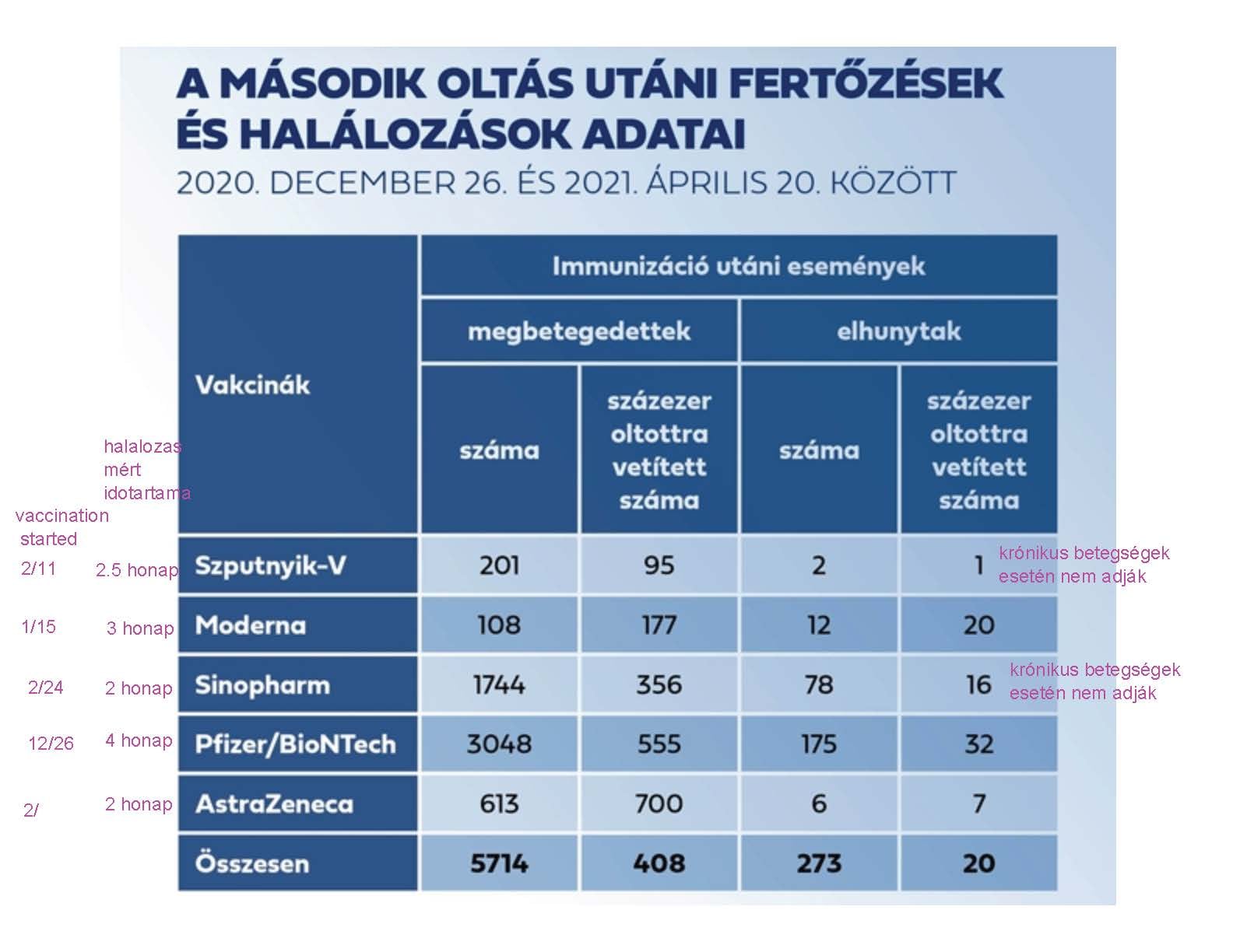 “Tehát 4 hónap alatt halt meg 32 idős ember 100 ezer Pfizer-beoltottból akiket az öregek otthonában beoltottak és krónikus betegség szenvedtek. A kínai vakcina esten 2 hónap alatt halt meg 16 ember 100 ezer beoltottból akik krónikus betegségben nem szenvedtek”