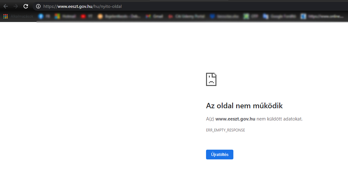 7:40 Frissítés: éledezik az eeszt időpontfoglaló. Az oldal távábbra sem töltődik be helyesen, de valami történik a háttérben.