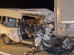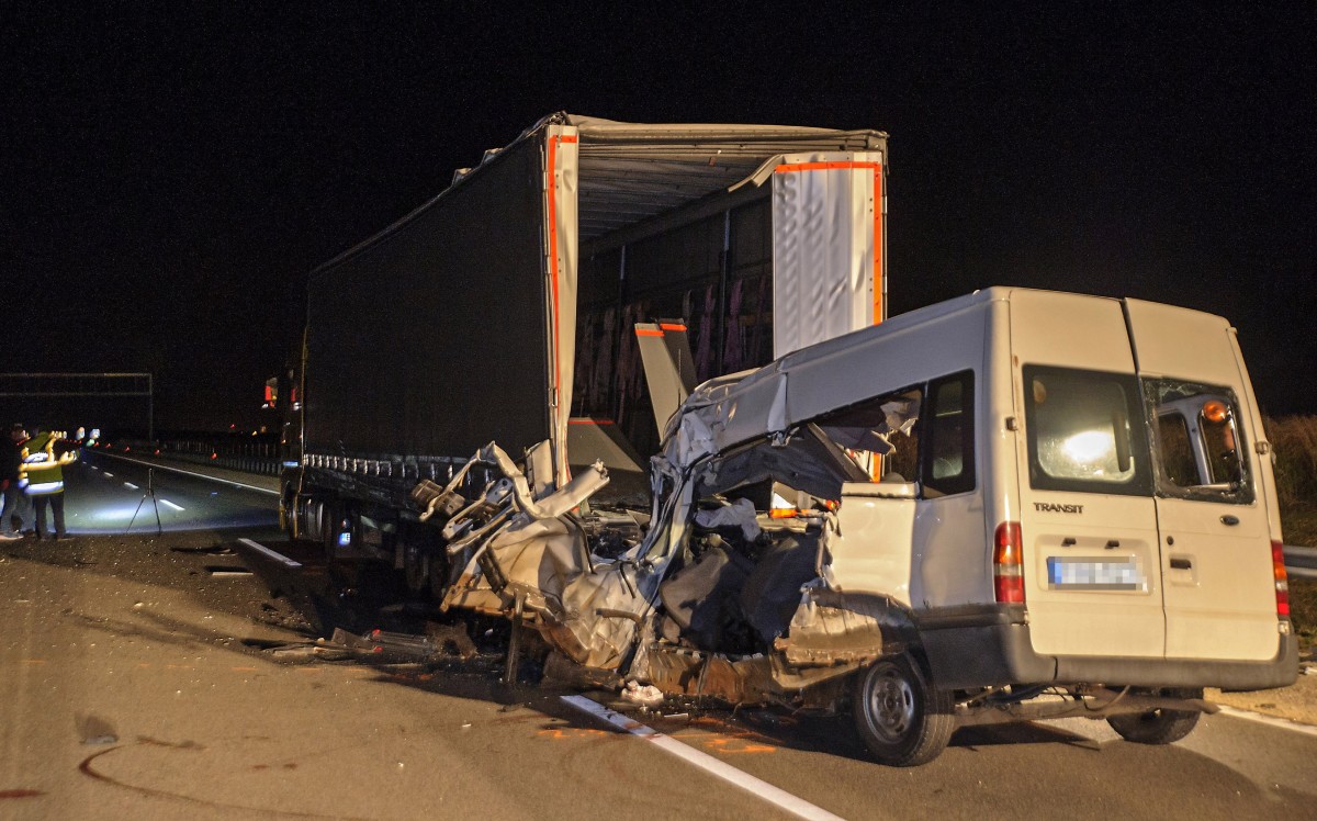 Csámpai Attila, a Pest Megyei Katasztrófavédelmi Igazgatóság szóvivője azt mondta az MTI-nek, hogy pótkocsis teherautó alá szorult egy kisbusz. Az érintett útszakaszt teljes szélességében lezárták.