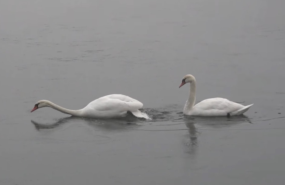 A helyszínre érkezve csodálatos jelenetet láttak. Az egyik hattyú elszánta magát, és elkezdte törni a jeget a párja előtt. Nézze meg a fantasztikus menekülést: