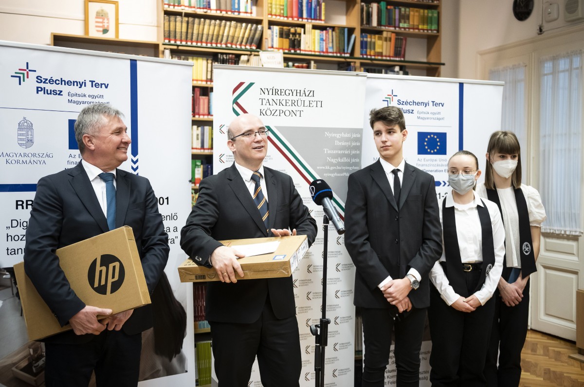 Az államtitkár Becsó Zsolt országgyűlési képviselővel közösen tartott sajtótájékoztatót a Bolyai Gimnáziumban, ahol azt követően pedagógusok és 9. évfolyamos tanulók szülei vették át a notebookokat.