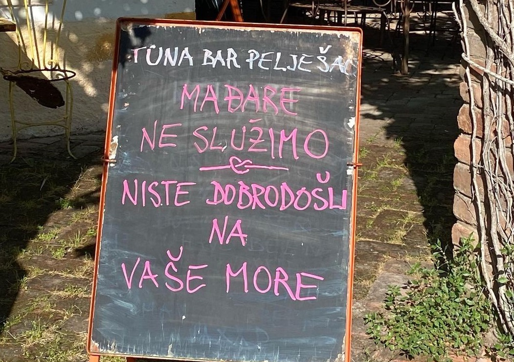 Ez pedig ugye nagyobbrészt a mai Horvátország területén található, így borítékolható volt, hogy az ottani közvélemény is reagál majd rá. Meg is történt, mint ahogyan ezen a közösségi médiában osztogatott fotón látható, egy horvátországi étterem bejáratához azt írták ki, hogy