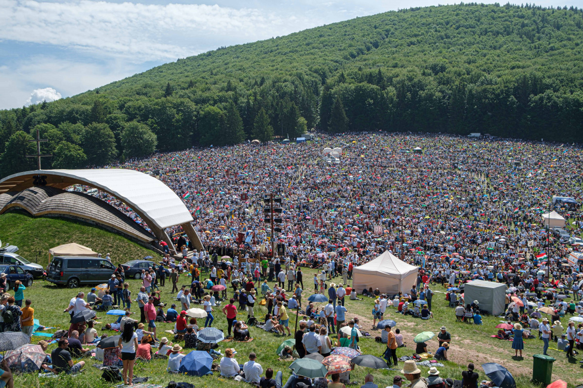 A pünkösd előtti szombaton tartott hagyományos zarándoklatra – melyet a világjárvány két éve után korlátozások nélkül rendezhettek meg – idén is százezrek érkeztek a csíksomlyói hegynyeregbe.