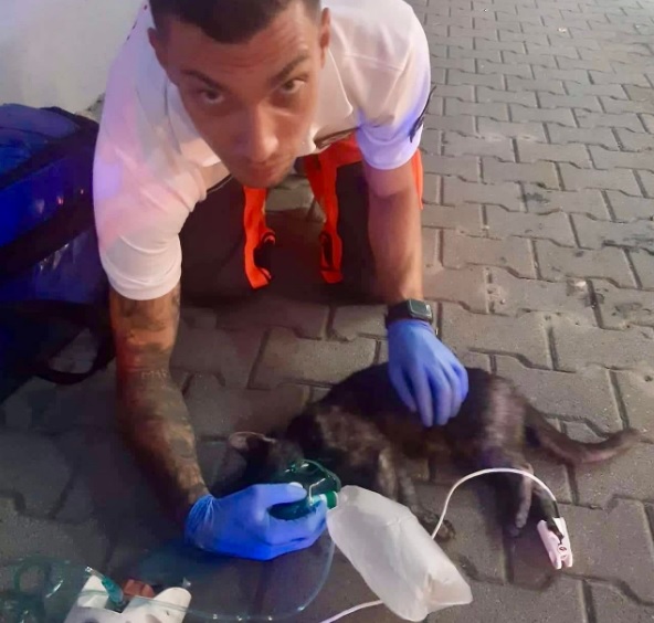 A facebookos beszámoló szerint egy tűzoltó szaladt ki az épületből, karjaiban egy eszméletlen fekete macskával, akit azonnal átvettek az életmentők és megkezdték az ellátását.