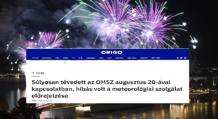 Téves volt az Országos Meteorológiai Szolgálat (OMSZ) előrejelzése, ami alapján az Operatív Törzs az augusztus 20-ai tűzijáték elhalasztásáról döntött – írta az Origo.hu vasárnap.