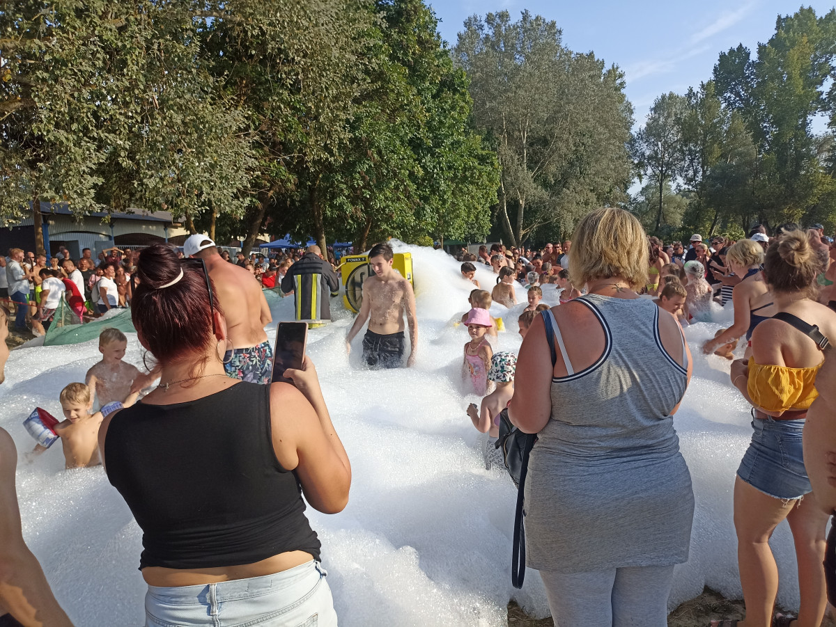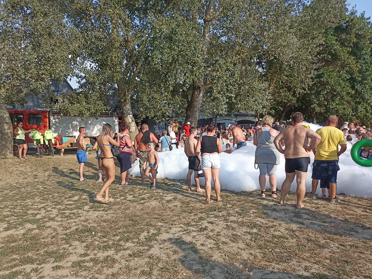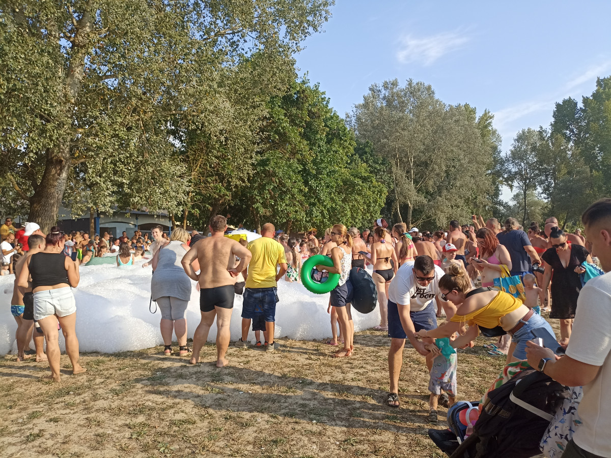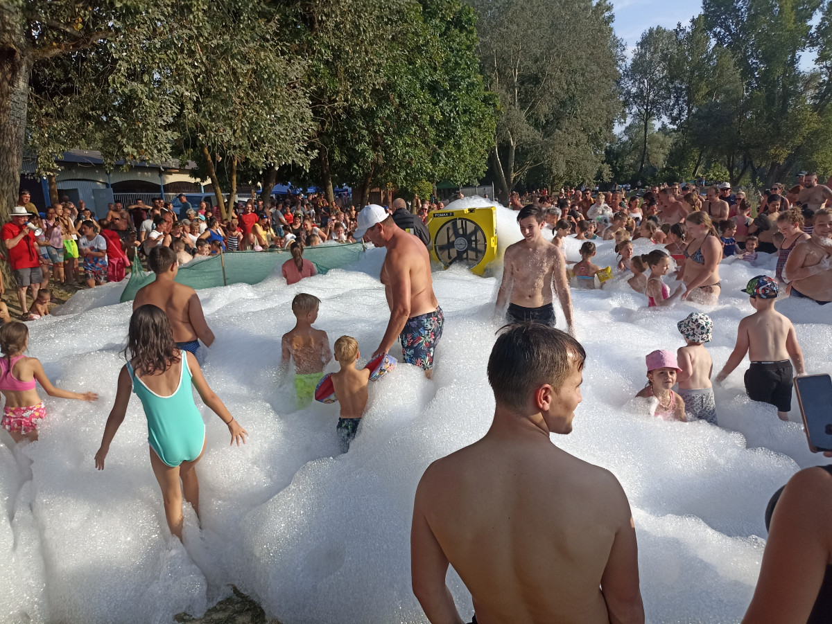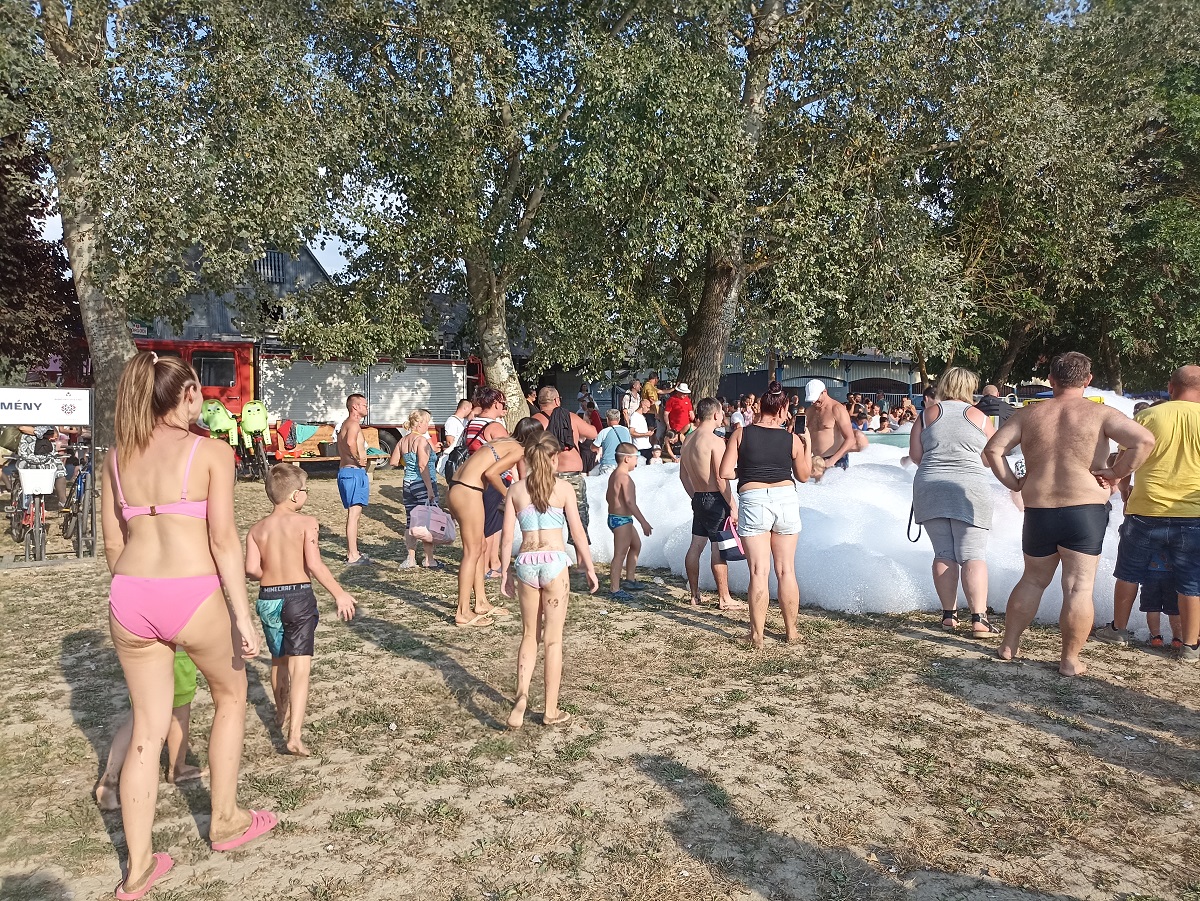 Szintén a ’90-es éveket, abból is a jóféle diszkós kalandokat idézte a tűzoltóautó által szervált habparti: