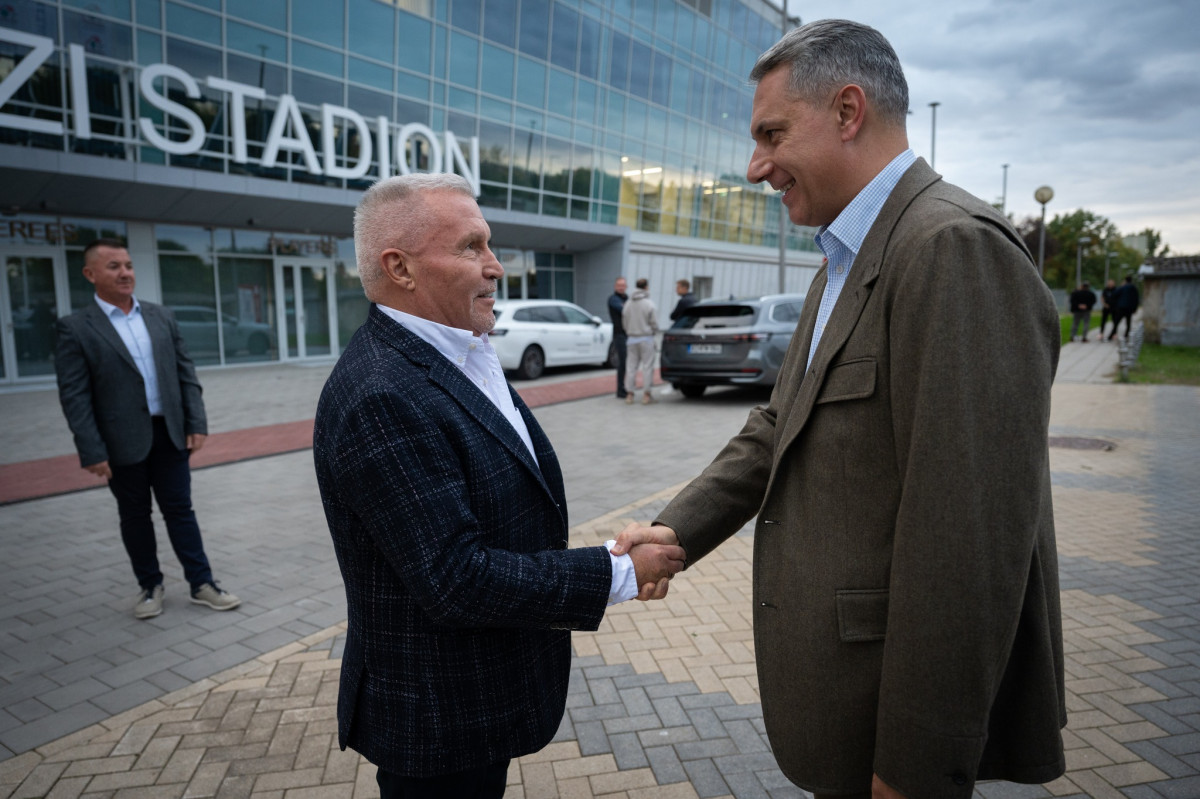 Lázár János építési és közlekedési miniszter megtekintette a jókora csúszással átadott nyíregyházi stadiont, és összefutott a klub elnökével, Révész Bálinttal is.