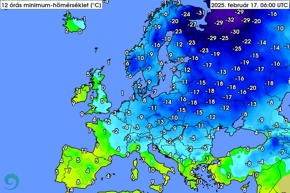 A Hungaromet rámutat: nem csak nálunk lesz farkasordító hideg, szinte egész Európát ellepi majd a sarkvidéki eredetű levegő: