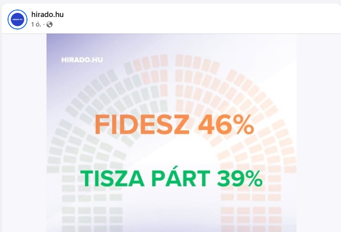 A Nézőpont Intézet hét elején készült közvélemény-kutatása szerint egy most vasárnap tartott országgyűlési választáson a Fidesz 46 százalékos listás eredménnyel nyerne a 39 százalékos Tisza Párt előtt – írja az évi 165 milliárd forintból működő “közmédia” – valójában fideszes szócső egyik végterméke, a hirado.hu.