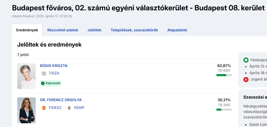 Hosszabban értékelte a Fidesz választási vereségét és a Tisza Párt kétharmados győzelmét Ferencz Orsolya, a leköszönő kormány űrpolitikáért felelős biztosa, aki a budapesti 2-es számú választókerületben indult a kormánypártok jelöltjeként.