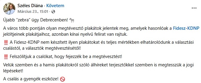 A Mészáros-féle zebrás sztorit a debreceni fideszesek – Széles Diánával az élen – is igyekeztek kézzel-lábbal tagadni. Debrecen “gondoskodási” alpolgármestere és bukott országgyűlési képviselőjelöltje gúnyosan “zebra ügynek” nevezete azokat a – szerinte – ellenzékhez köthető akciókat, amelyekkel pártját igyekeztek lejáratni.
