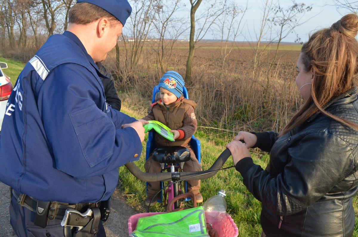 Hajdúböszörmény külterületén található Szőlőskertben a rendőrök – figyelemfelhívó jelleggel – kerékpárosoknak és a menetrend szerint közlekedő autóbuszról leszálló gyalogosan közlekedő felnőtteknek és gyermekeknek láthatósági mellényeket ajándékoztak.